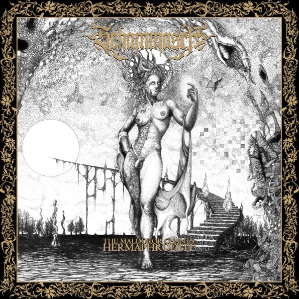 Knapp ein Jahr nach dem Mammutwerk „Triangle“ legen SCHAMMASCH mit der EP „The Maldoror Chants: Hermaphrodite“ nach. Eins vorweg: Die Band ist weder in Belanglosigkeit abgedriftet, noch wirkt sie künstlerisch ausgebrannt, im Gegenteil: Die sieben Songs der EP wirken durchdacht und exakt arrangiert, lassen dabei aber viel Raum für Atmosphäre. Die Musik klingt stellenweise noch sphärischer und weniger Songorientiert als auf dem Vorgänger. Die Gitarren spielen diesmal eher eine Nebenrolle und lassen viel Raum für die variablen Drums und atmosphärische Synthesizer-Sounds. Auch der Gesang ist noch weniger Black Metal-artig als es auf den bisherigen Alben der Fall war. Stattdessen wirkt die Stimme noch mehr ritualisiert und die Texte werden Großteils als eine Art schamanische Gebete vorgetragen. Einziger Ausreißer aus dem schleppenden Ritual sind die Blastbeats in „Chimerical Hope“ doch selbst dieser Song verbreitet eine drückende und hypnotische Atmosphäre.